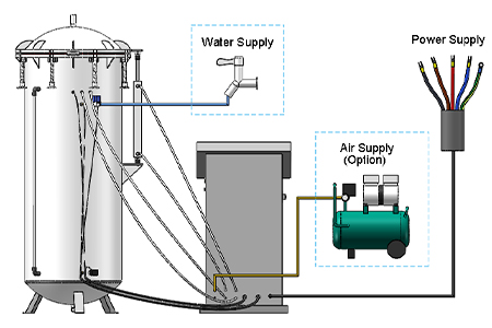 O múltiples agujeros de prueba se pueden abrir en la cubierta del tanque de agua para suministrar energía al dispositivo de medición.
