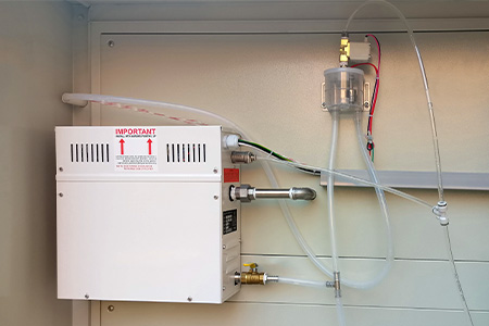 Sistema de humedad y purificación de aguaUnHumidificador evaporativo externo con suministro automático de aguaAsegura un control estable de la humedad. El sistema utiliza agua purificada para evitar la contaminación y admite pruebas de calor húmedo IEC a largo plazo. |  |