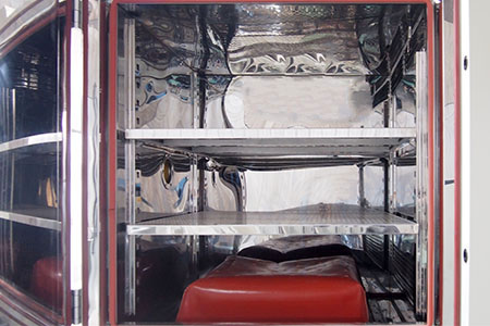 Sala DE TRABAJO | El volumen interno se puede personalizar. Está hecho de placa de acero inoxidable con acabado de espejo SUS304, que es resistente a la corrosión, anti-oxidación, fácil de limpiar y viene con soportes de muestra perforados de doble capa como estándar. La calefacción antiniebla de película conductora de vidrio templado transparente de doble capa puede mantener una vista clara incluso en condiciones de alta humedad o baja temperatura.